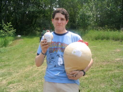 Chris and Me take turns holding the twelve-inch shell that we used, with a four-incher for size reference.