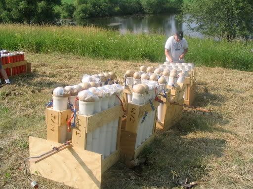 The big mortars. In the foreground are tubes for the last part of the finale, a three, four, five, two eights, a ten and a twelve all fired right after the other. In the background are twenty-five eight-inch shell mortars.