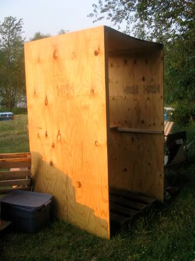 The "Shoot Shack" If anything goes wrong you all duck into this three-quarters-inch plywood shack. Comforting. I know you can't tell from the picture but it's just to the right of the shoot panel.